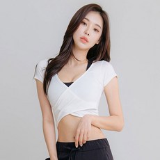브이넥 크로스 크롭탑
